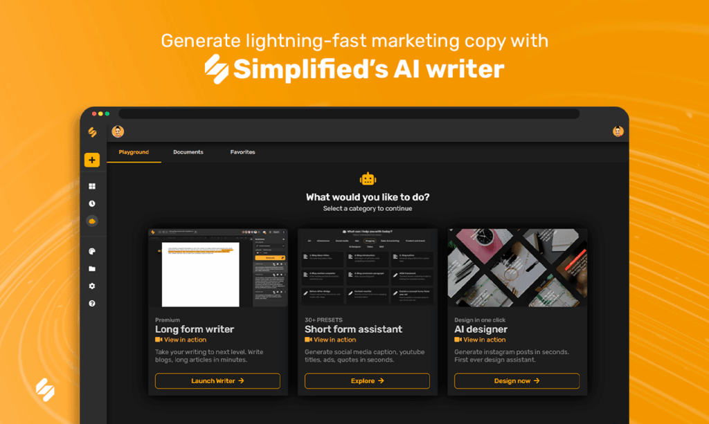Simplified AI is a unique platform that combines copywriting AI tools with graphic design capabilities — all under one roof. It’s ideal for social media managers and content creators.