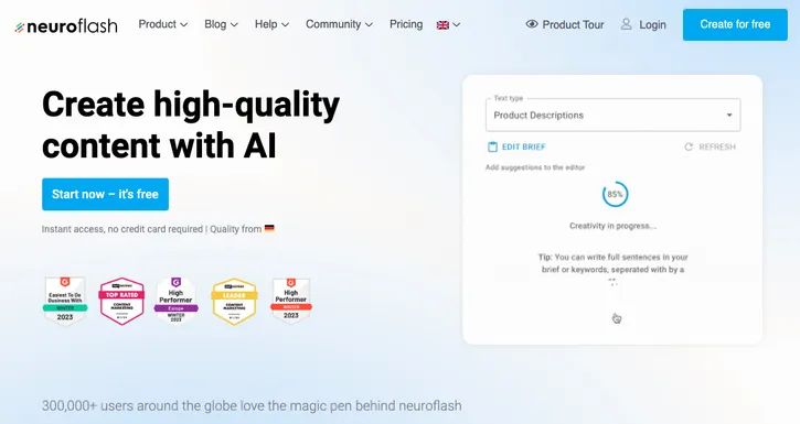 7. Neuroflash — Best AI Copywriting Tool for Europe