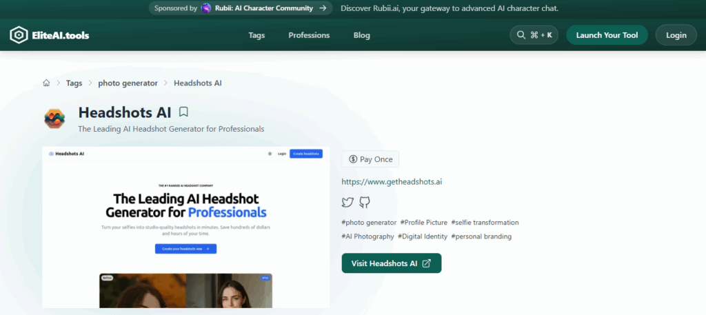 Elite Headshots AI targets high-end professional markets with premium AI photo editing for headshots. The platform has built a reputation among C-level executives and public figures for delivering exceptional quality.