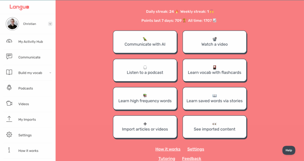 Langua AI focuses on AI language learning app speaking features. It uses speech AI to help you perfect your accent.