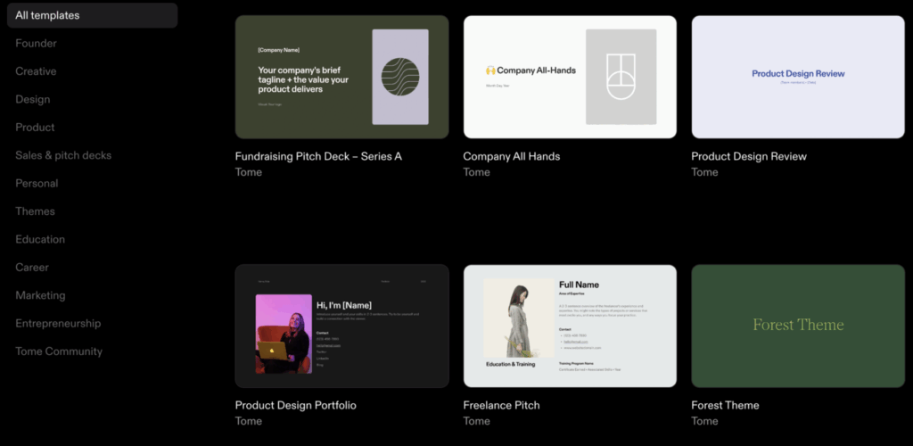3. Tome – AI-Powered Storytelling Presentations
