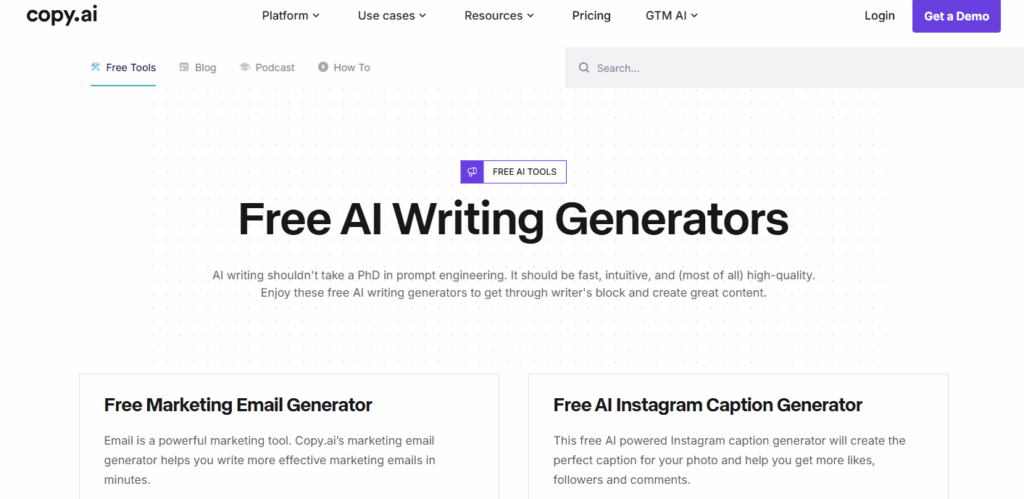 | Copy.ai | Creative copywriting | $36/month | Conversion optimization | Small businesses, e-commerce |