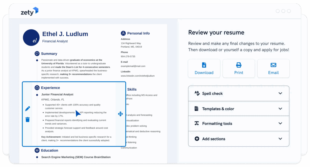 2. Zety Resume Builder