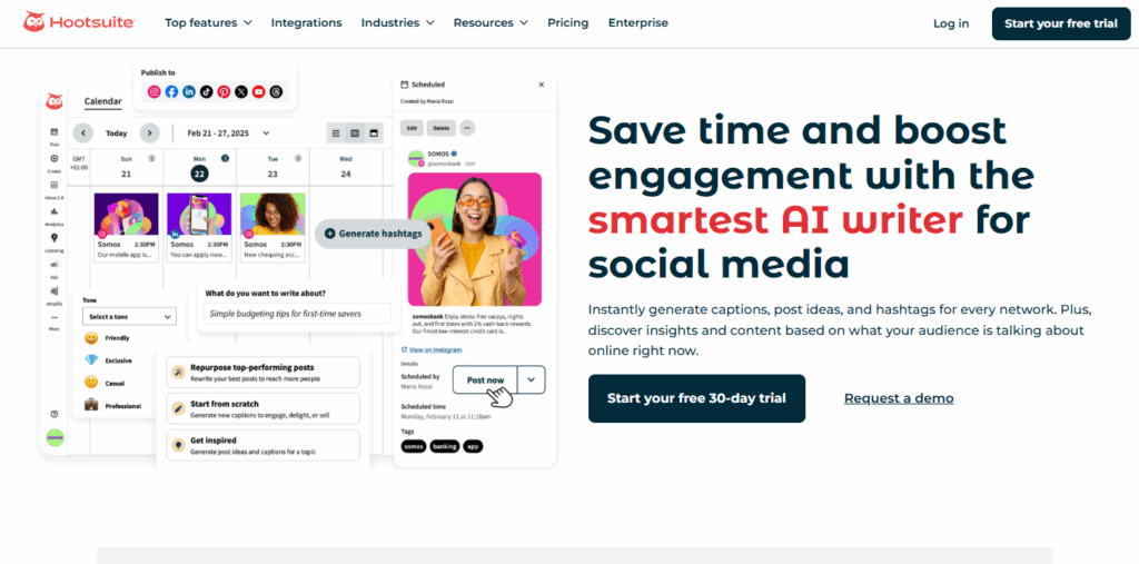 | Hootsuite OwlyGPT | Trend-aware content | Real-time feed analysis | Subscription-based | Multi-platform |