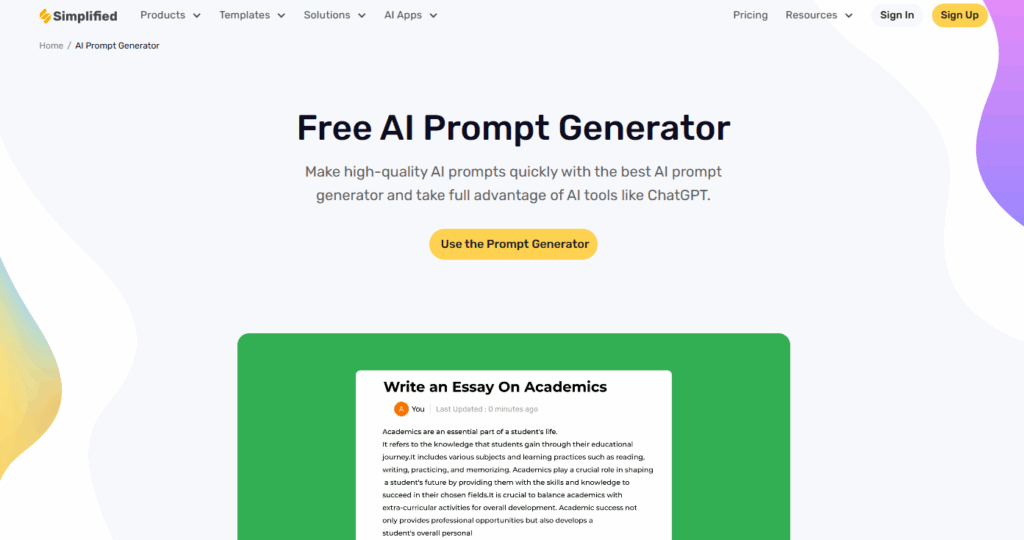 Simplified has positioned itself as a comprehensive ai tools for programming and content creation platform that includes sophisticated prompt generation capabilities. The platform’s integrated approach makes it valuable for users who need multiple AI tools in a single, cohesive environment.
