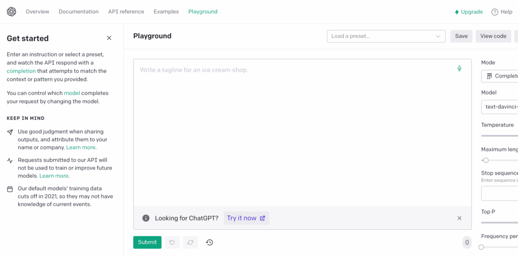 The Playground’s strength lies in its direct access to OpenAI’s models, allowing users to experiment with different parameters and settings. This level of control makes it invaluable for understanding how subtle changes in prompt structure affect output quality. The platform serves as both a testing ground and a learning environment for prompt engineering best practices.