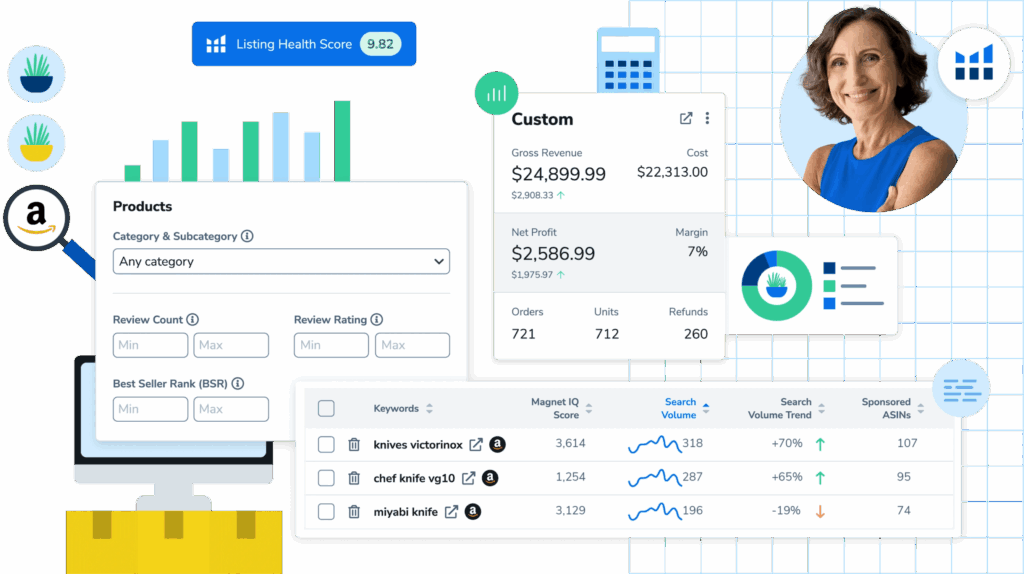 | Helium 10 | Complete seller suite | $29-$399/month | Predictive analytics, keyword AI, listing optimization | Limited free plan |