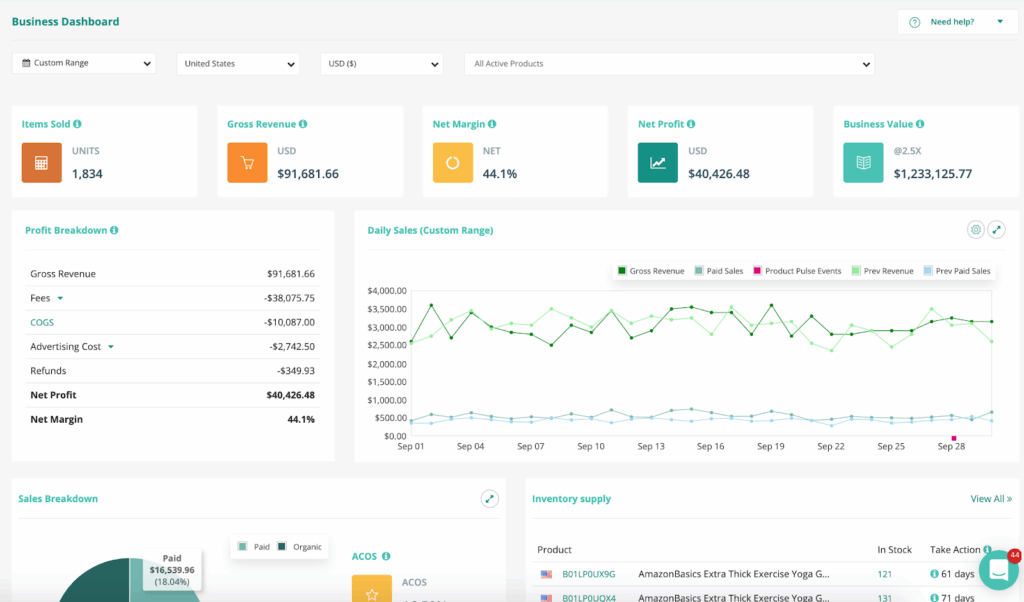 Perpetua’s business intelligence dashboard provides comprehensive analytics that help sellers understand their overall Amazon performance. The AI-powered insights identify trends in sales performance, highlight opportunities for improvement, and suggest strategic adjustments based on marketplace dynamics.