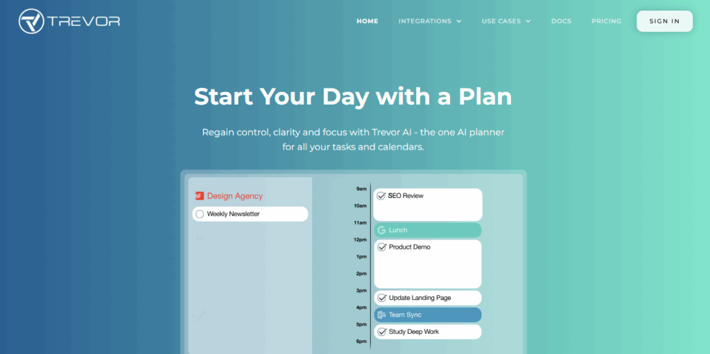 3. Trevor AI – Intelligent Time Blocking Specialist