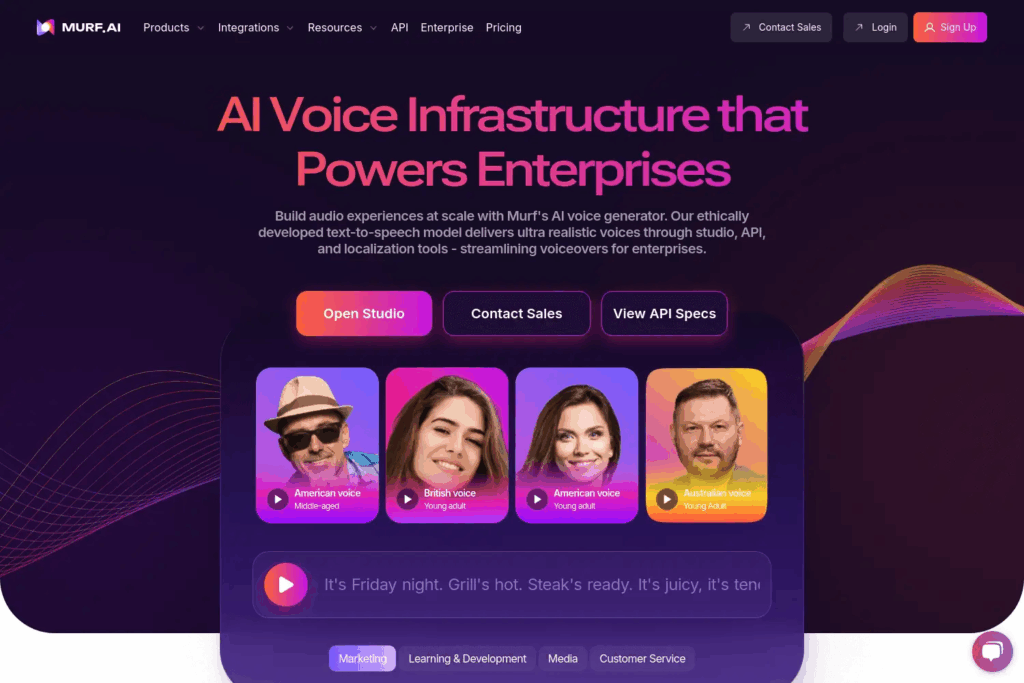 Murf.ai is popular for turning simple scripts into professional-grade voiceovers in minutes. This AI voice generator is designed with marketing, training, and e-learning professionals in mind. The interface allows fine-grained control over pauses, emphasis, and pronunciation.