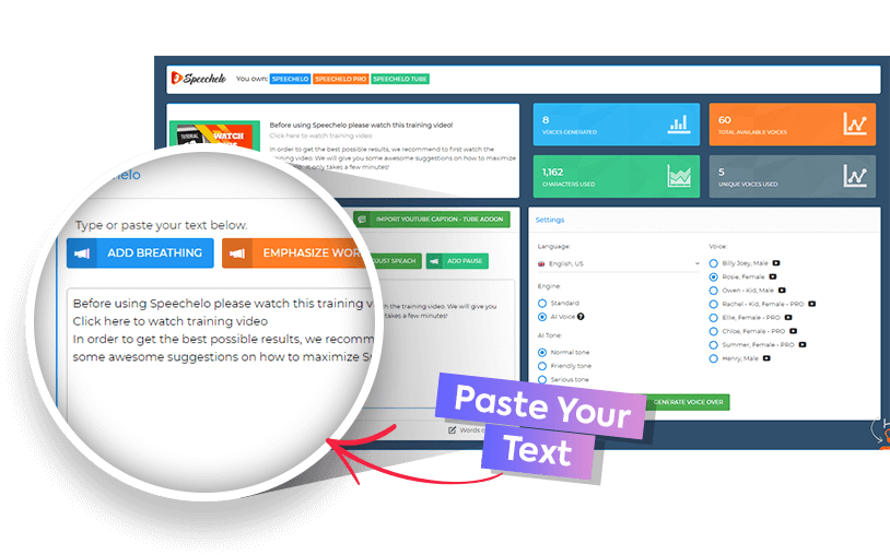 With support for 30+ languages and natural breathing effects, Speechelo’s voices sound more dynamic than robotic. It’s an excellent choice for content creators on platforms like YouTube or TikTok.