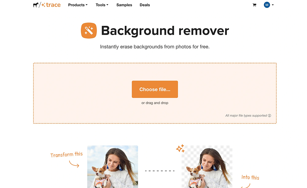For quick, no-fuss cutouts, Trace is perfect. It’s one of the fastest and simplest background removal tools online today.