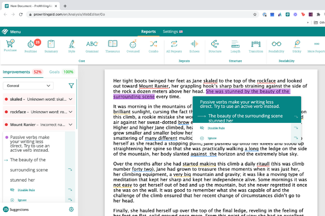 ProWritingAid is a powerful grammar corrector that goes beyond simple spelling check or fix grammar features.