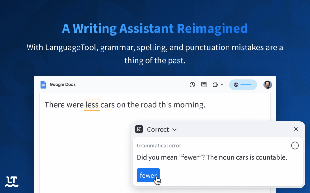 • Browser & app support: Works across browsers, Google Docs, LibreOffice, and desktop apps.