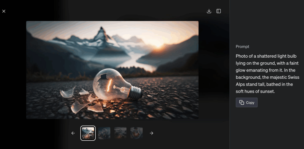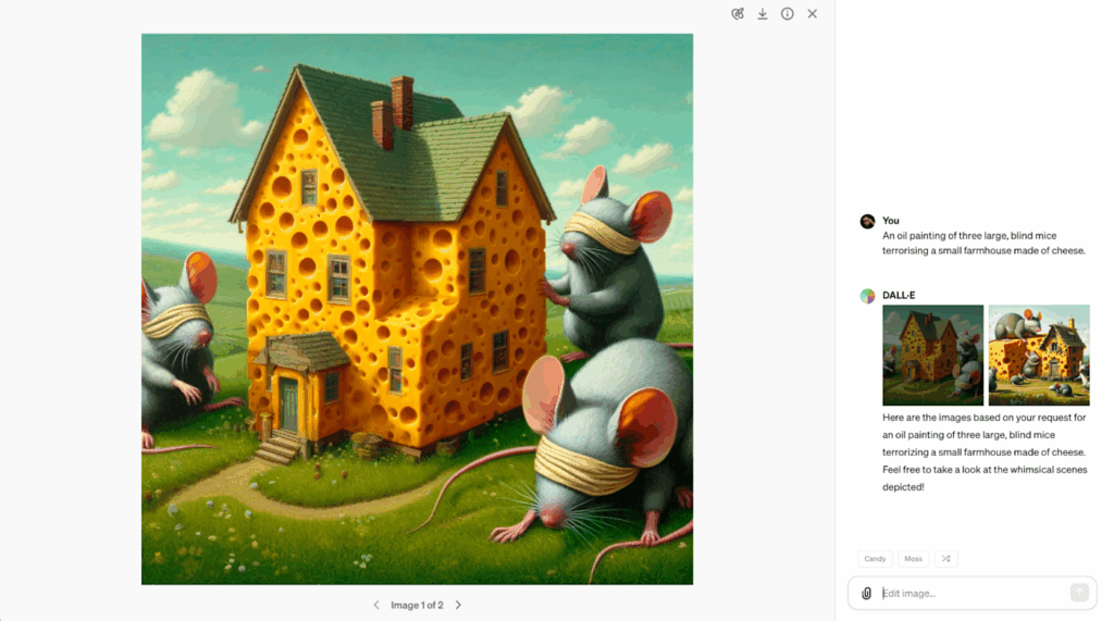 DALL·E 3’s interface, especially within ChatGPT, is minimal and intuitive. No software download is required. You simply describe what you want in plain language, and images appear.