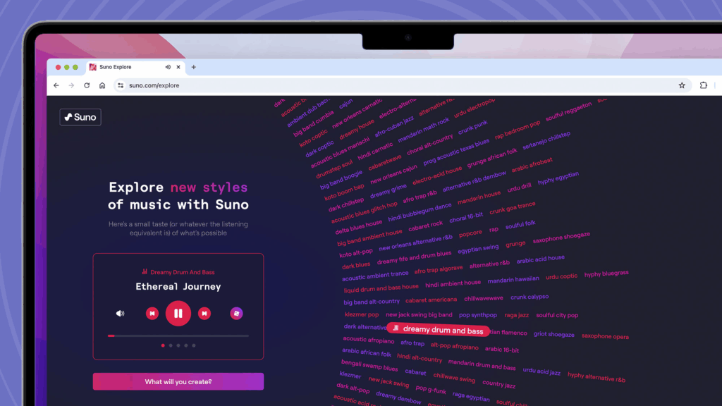 Q: Can I use Suno AI to create music that sounds like existing artists? A: While the AI music generator can create content in various styles, users should be cautious about creating content that closely mimics existing artists’ work. The platform includes guidelines about ethical use and copyright considerations. It’s recommended to use the tool for inspiration and original creation rather than direct imitation.