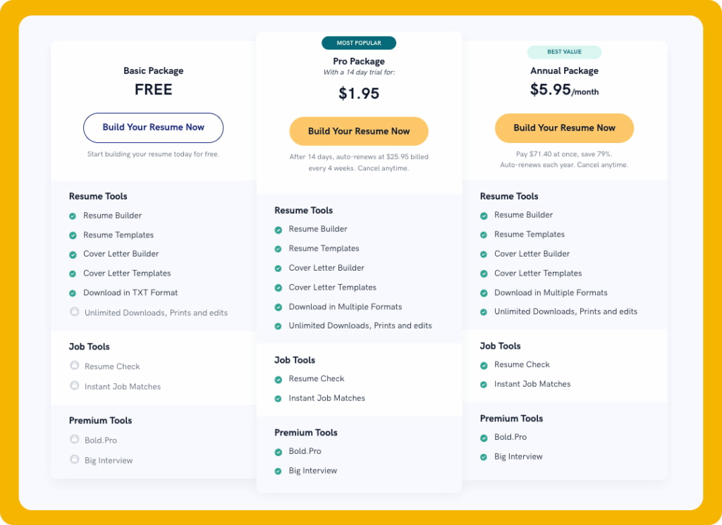 - Bundles: Some packages include unlimited access to cover letters and CVs.